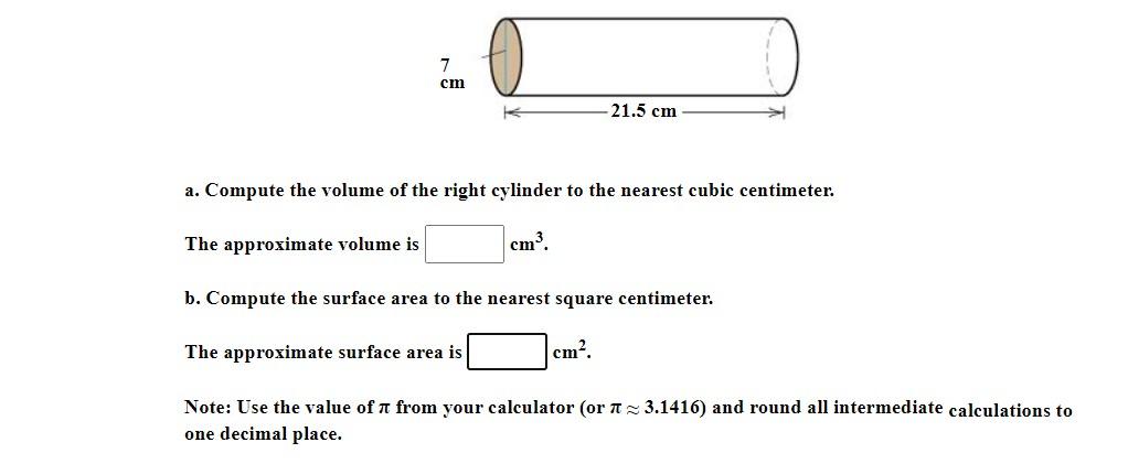 Solved 7 Cm 21 5 Cm A Compute The Volume Of The Right Cy Chegg Com